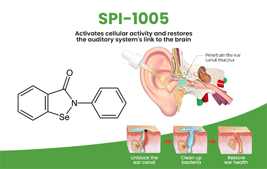 It is an organic compound with antioxidant and anti-inflammatory properties that improves hearing and tinnitus symptoms by reducing oxidative stress and inflammation in ear tissue.
